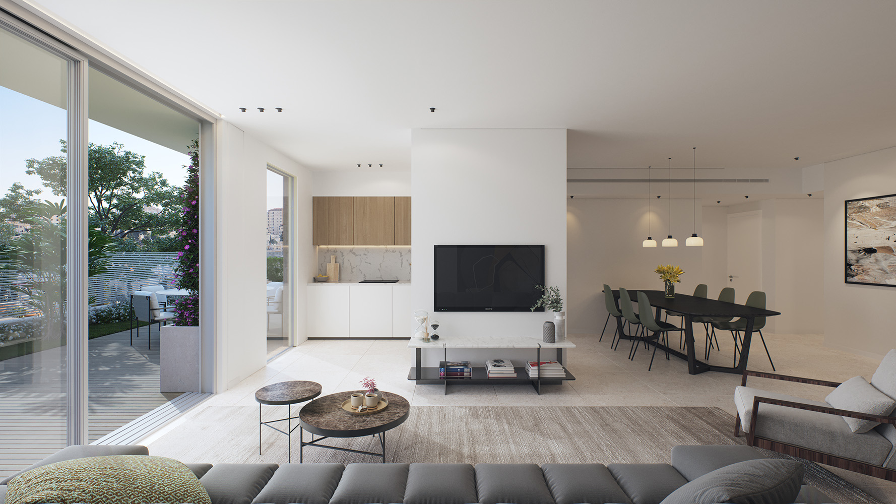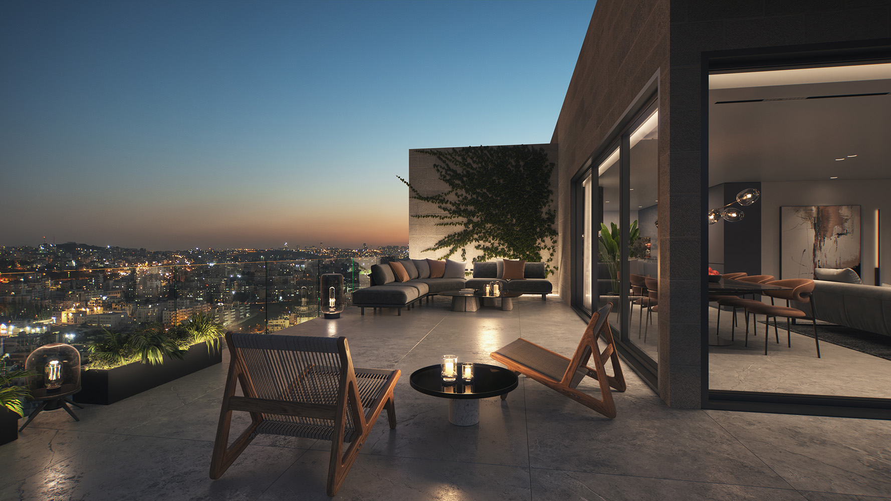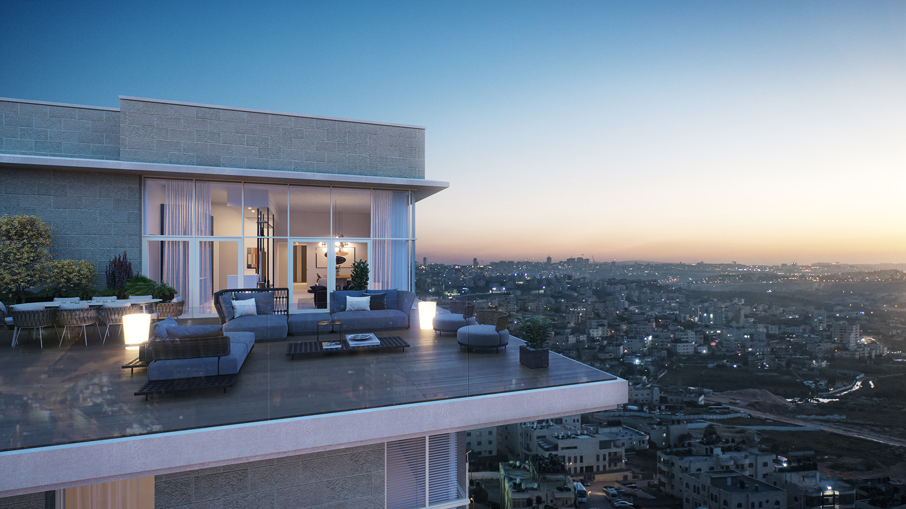 أما التصميم الداخلي، فيجمع بين الحداثة والراحة، ويشمل مطبخاً مجهزاً، ومساحة مخصصة للخدمات، بالإضافة إلى أنظمة تدفئة تحت البلاط وتبريد مركزي (VRF) لضمان تجربة سكنية متكاملة، وتضم البنايات مدخل لوبياً فاخراً، وطوابق مسقوفة لمواقف السيارات وغرف التخزين، بالإضافة إلى حديقة عامة ومحلات تجارية.